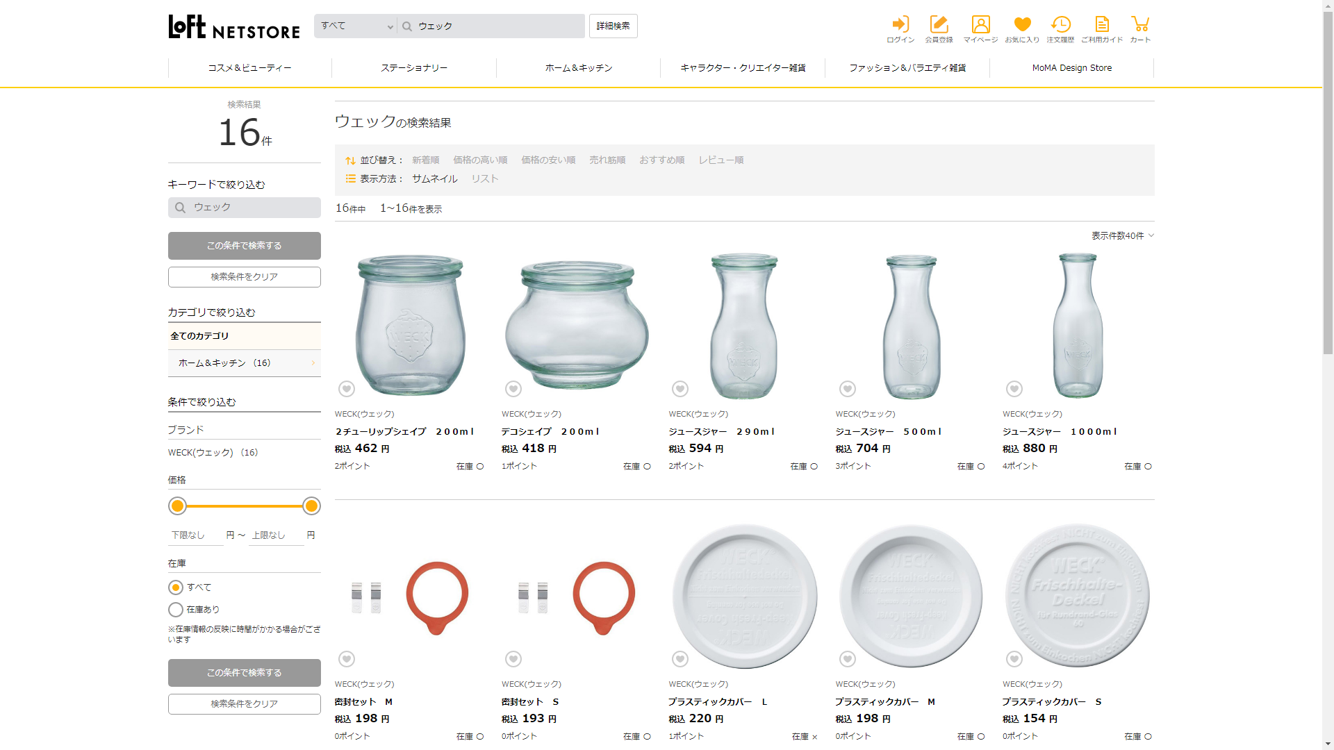 お調べしたところ現在、ロフトではウェックに関連する商品が販売されています。