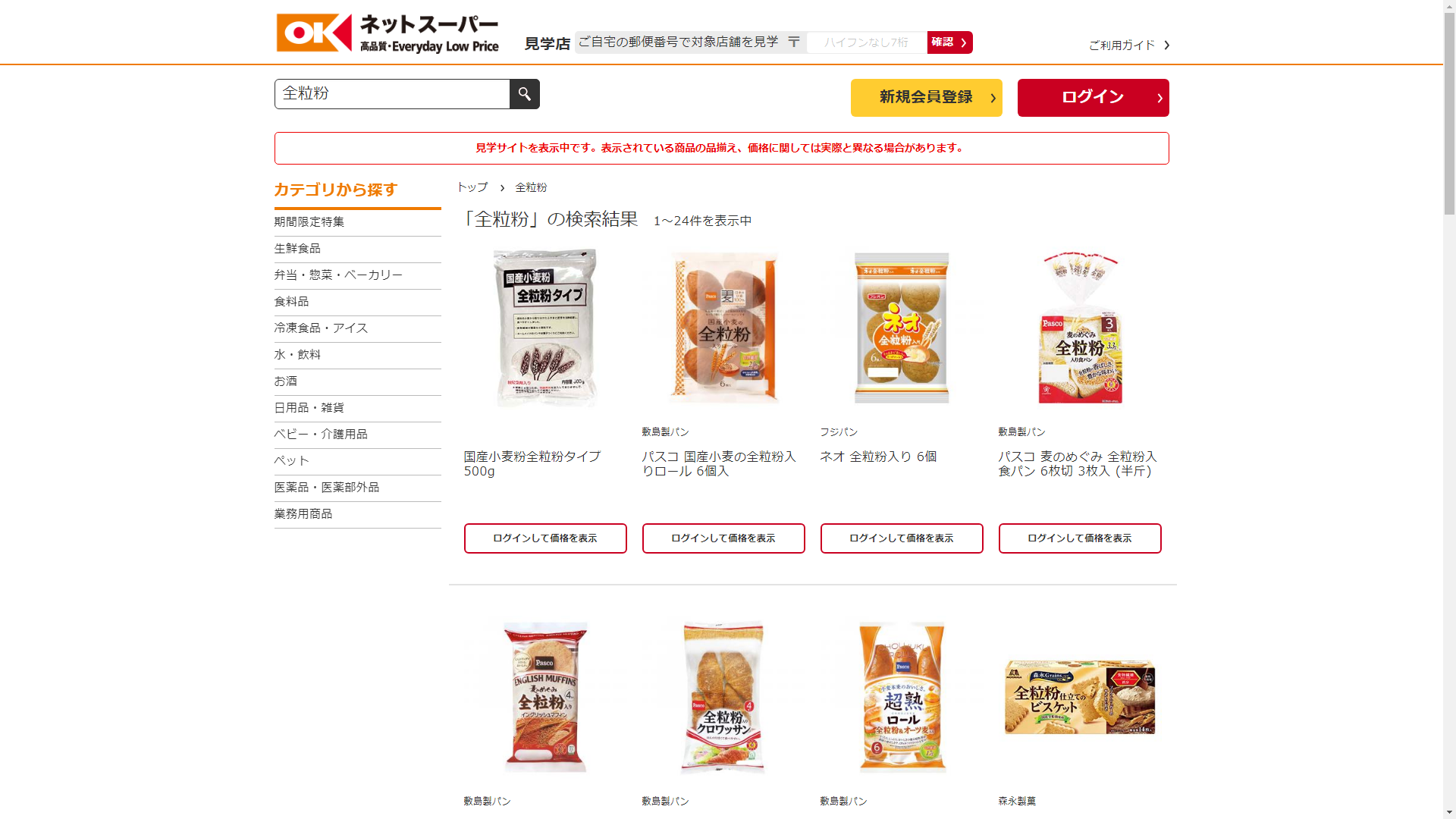 全粒粉はオーケーネットスーパーで販売されています