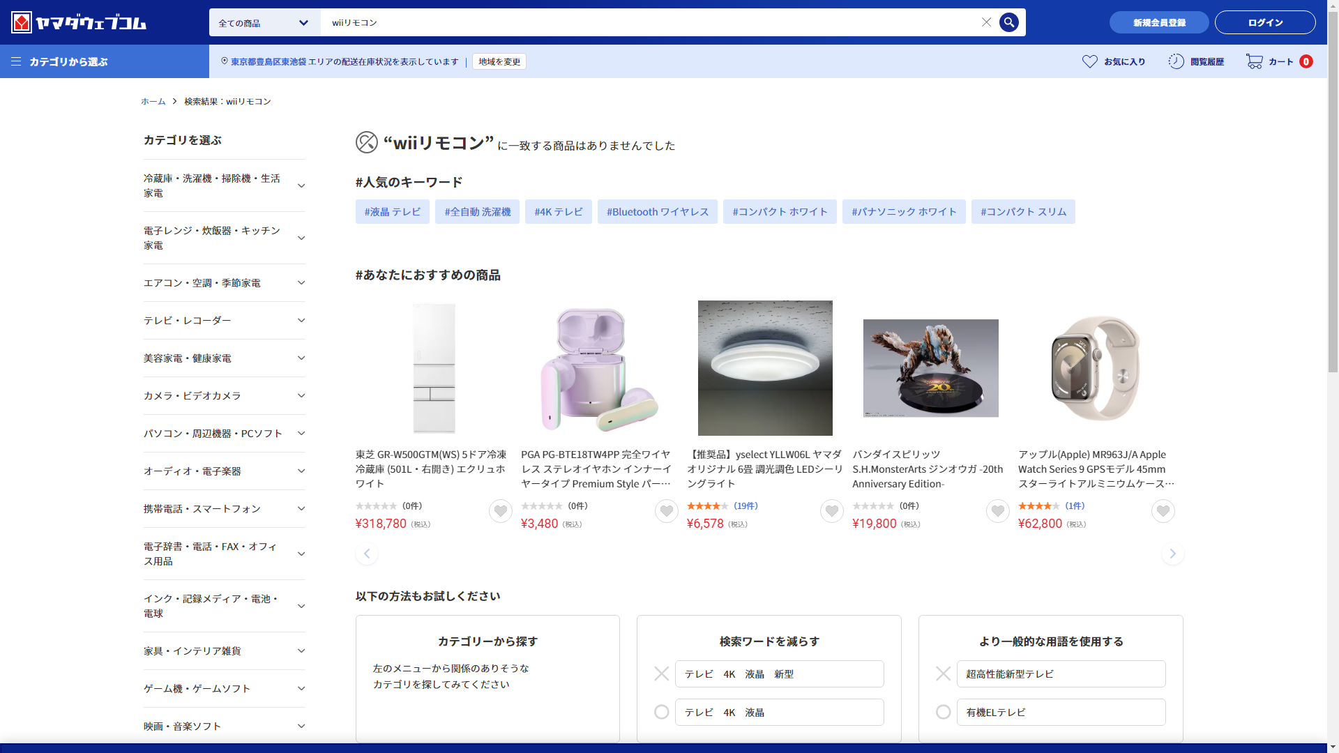 wiiリモコンは家電・電化製品のコジマには売っていません