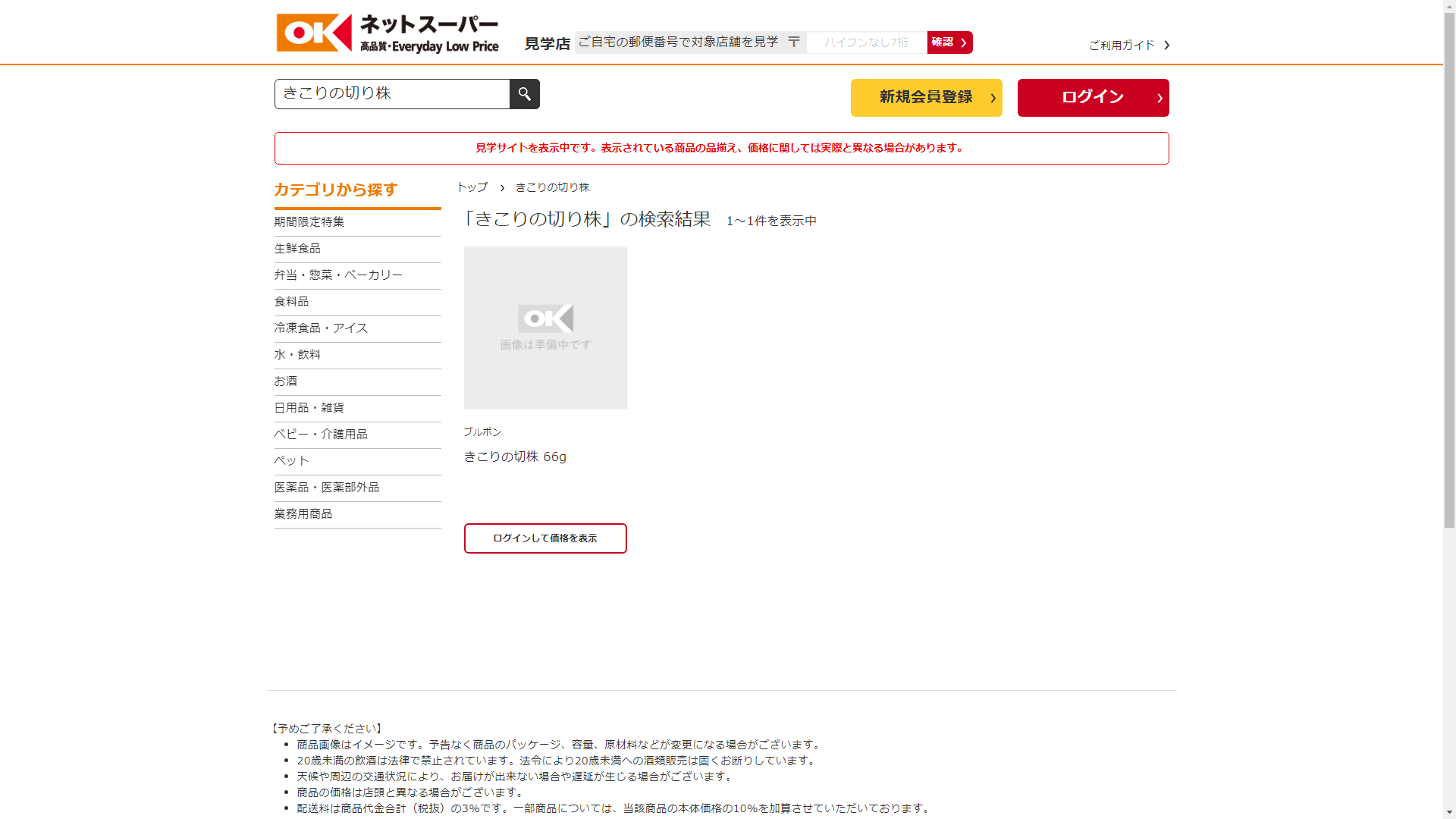 お調べしたところ現在OKネットスーパーではきこりの切り株に関連する商品が販売されています。