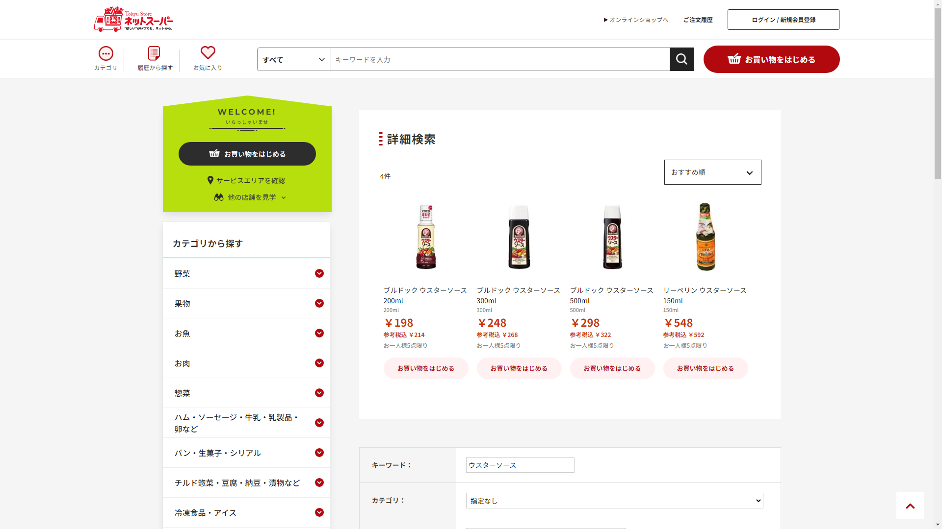 お調べしたところ現在、東急ストアではウスターソースの関連する商品が販売されています。