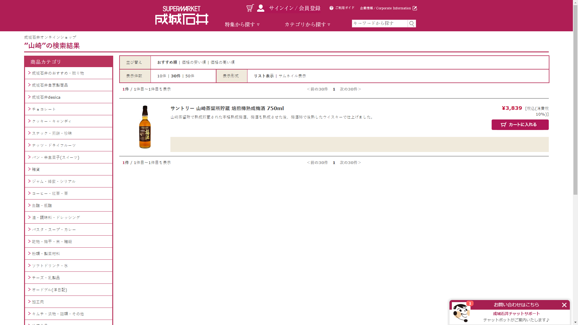 お調べしたところ現在、成城石井公式オンラインショップでは山崎に関連する商品を買うことが可能です。