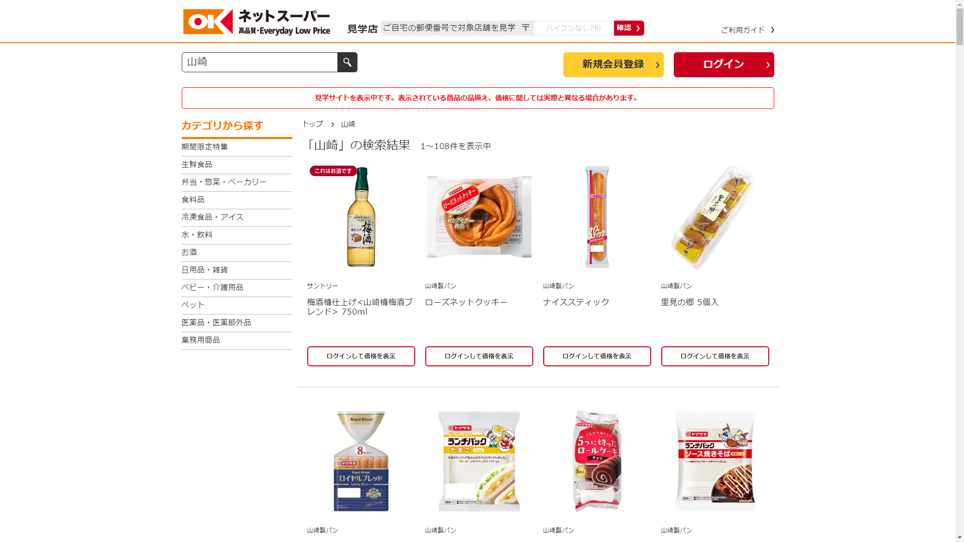 山崎はオーケーネットスーパーで販売されています