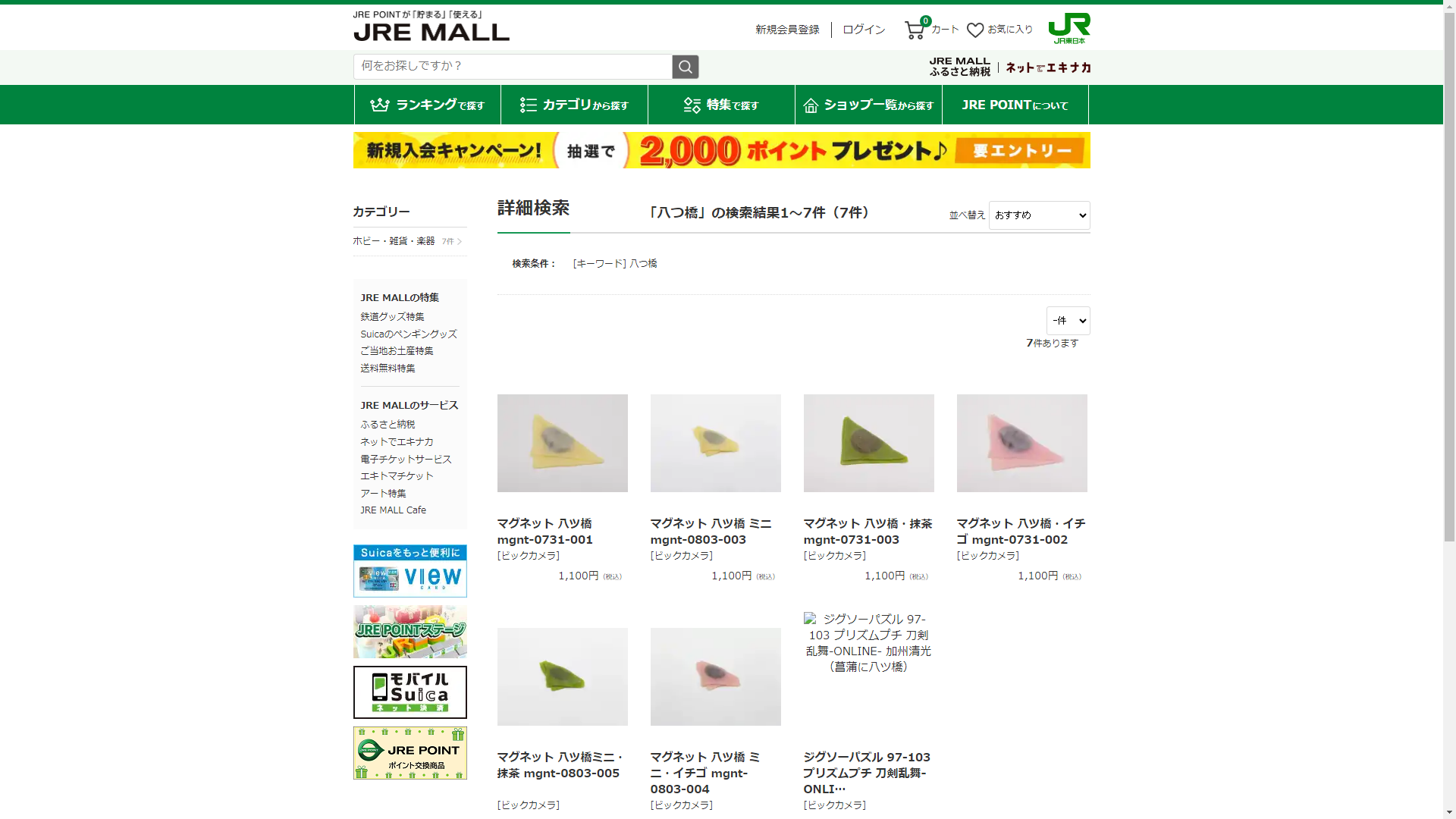 お調べしたところ現在、JRの駅お土産専門サイトJRE MALLでは八つ橋に関連する商品を買うことが可能です。