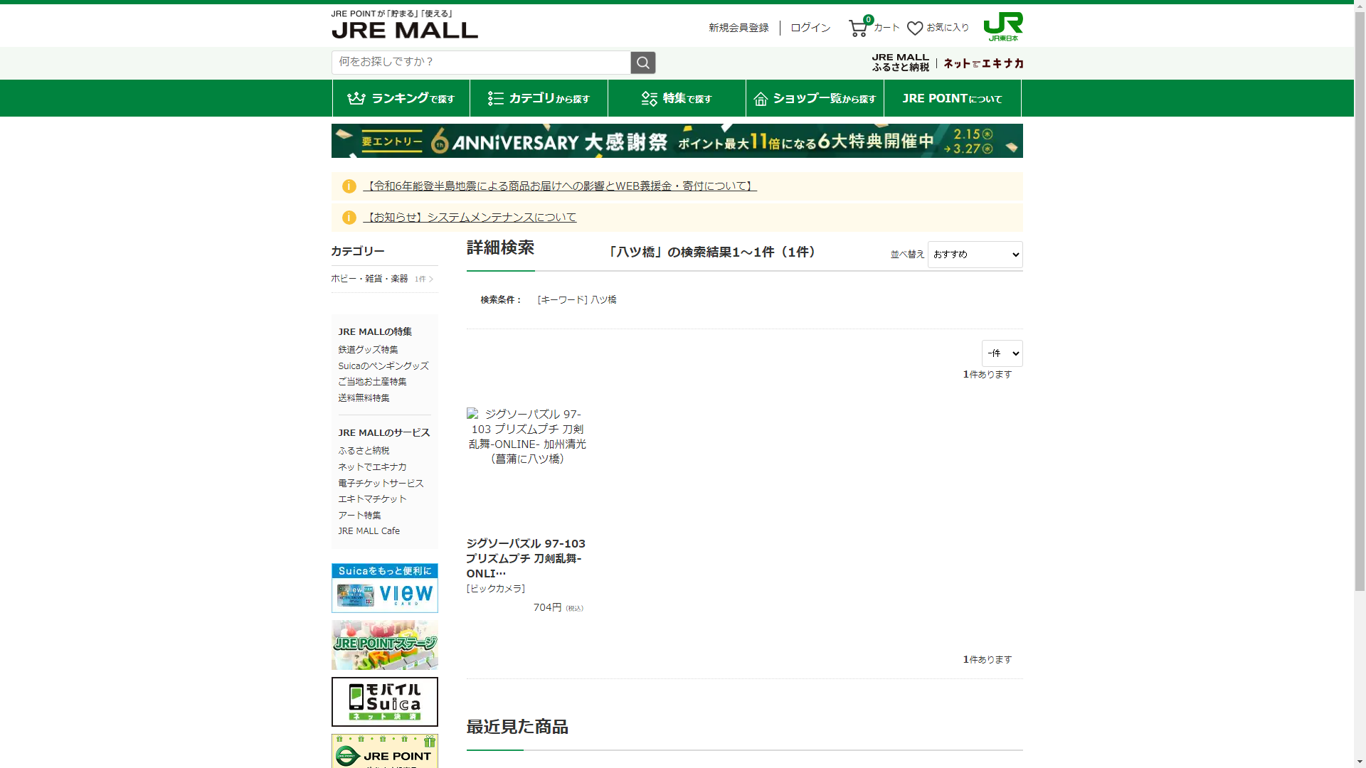 お調べしたところ現在、JRの駅お土産専門サイトJRE MALLでは八ツ橋に関連する商品を買うことが可能です。